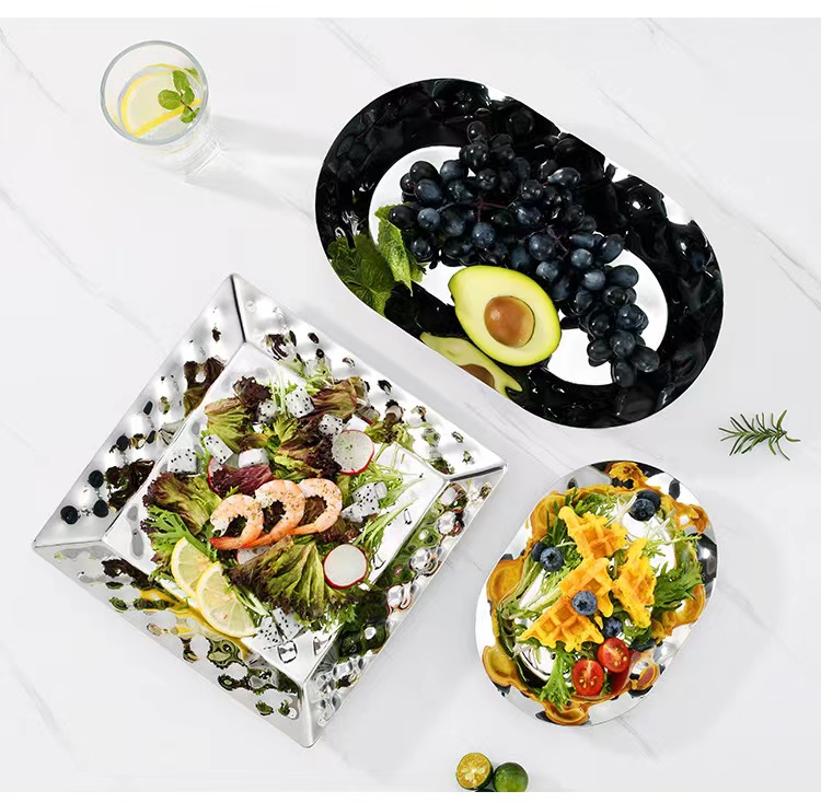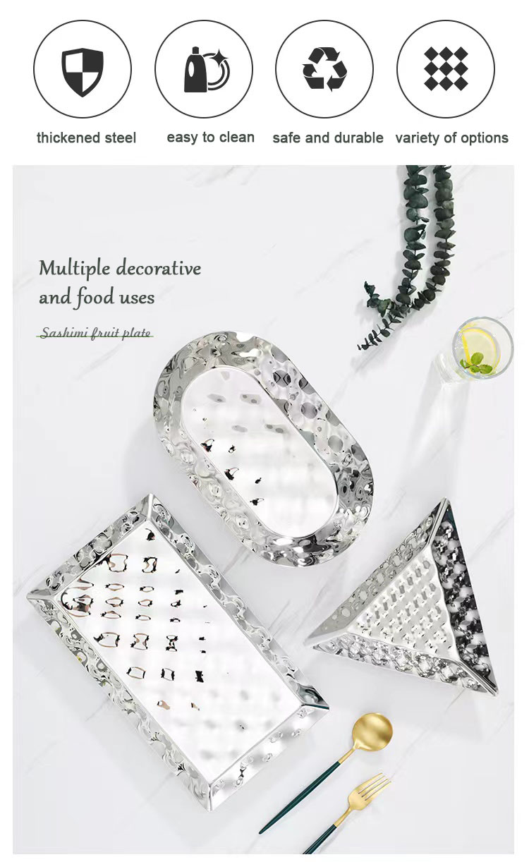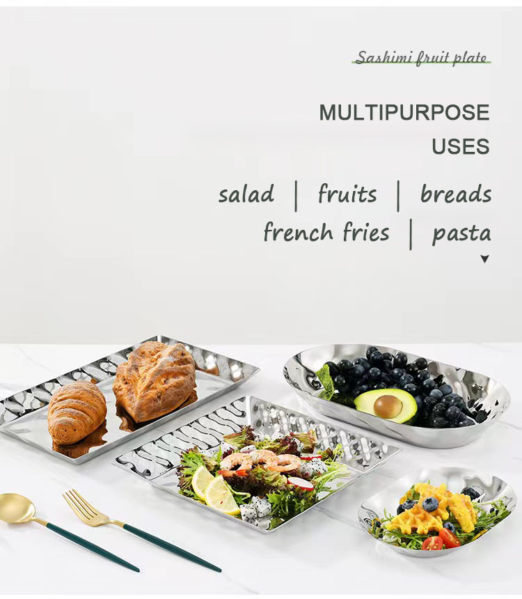 Hammered steel fruit basin decorative glossy silver metal hammered bowl is made of food-grade stainless steel, which has strong chemical stability and is not easy to rust; the surface is glossy-finished, easy to clean, not easy to hide dirt, and dishwashers safe. Six different shapes of fruit bowls can be used as decorations. Can be used to hold fruit, salad, bread pasta, beans, asparagus etc. Applicable to various scenarios: weddings, housewarmings, anniversaries, birthdays, holidays, etc.